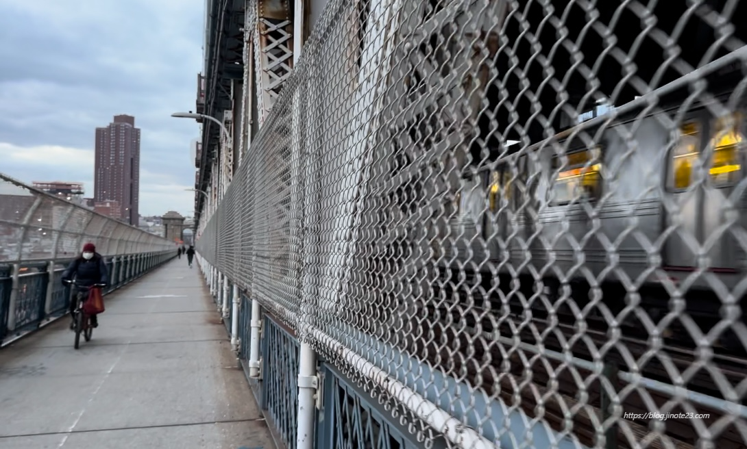 맨해튼 다리는 바로 옆으로 지하철이 다니기 때문에 지나갈 때마다 진동이 다 느껴졌어요. 여기는 사진스팟으로 유명하지 않아서 사람들이 많이 안 다니고, 진짜로 건너가기 위해 이용하는 느낌이었어요.