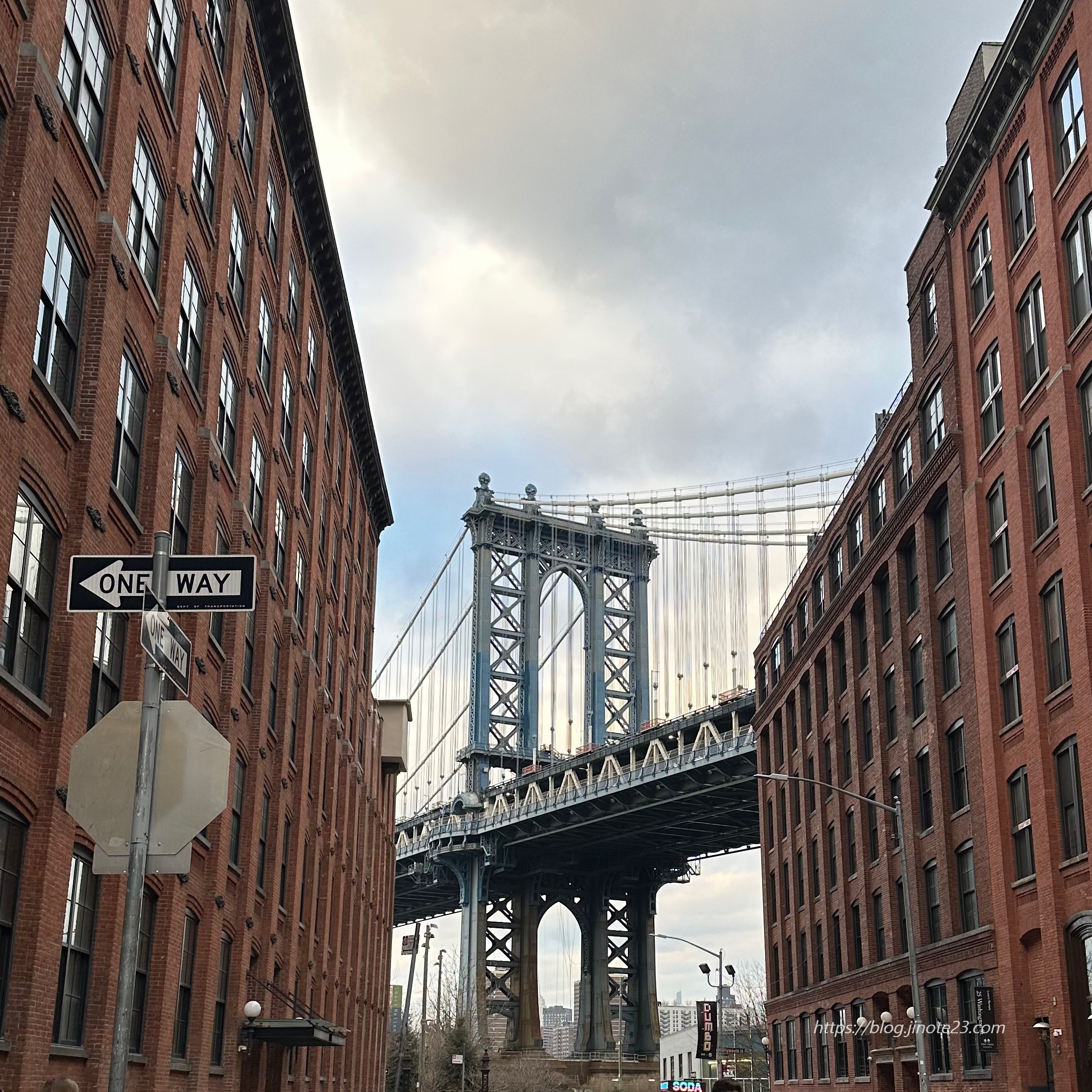 Dumbo는 Down Under the Manhattan Bridge Overpass(맨해튼 다리 고가도로 아래)의 약자로 브루클린 다리와 맨해튼 다리 중간 아래에 위치하며, 갈색 건물 사이로 맨해튼 다리가 보이는 사진스팟으로도 유명한 곳입니다.