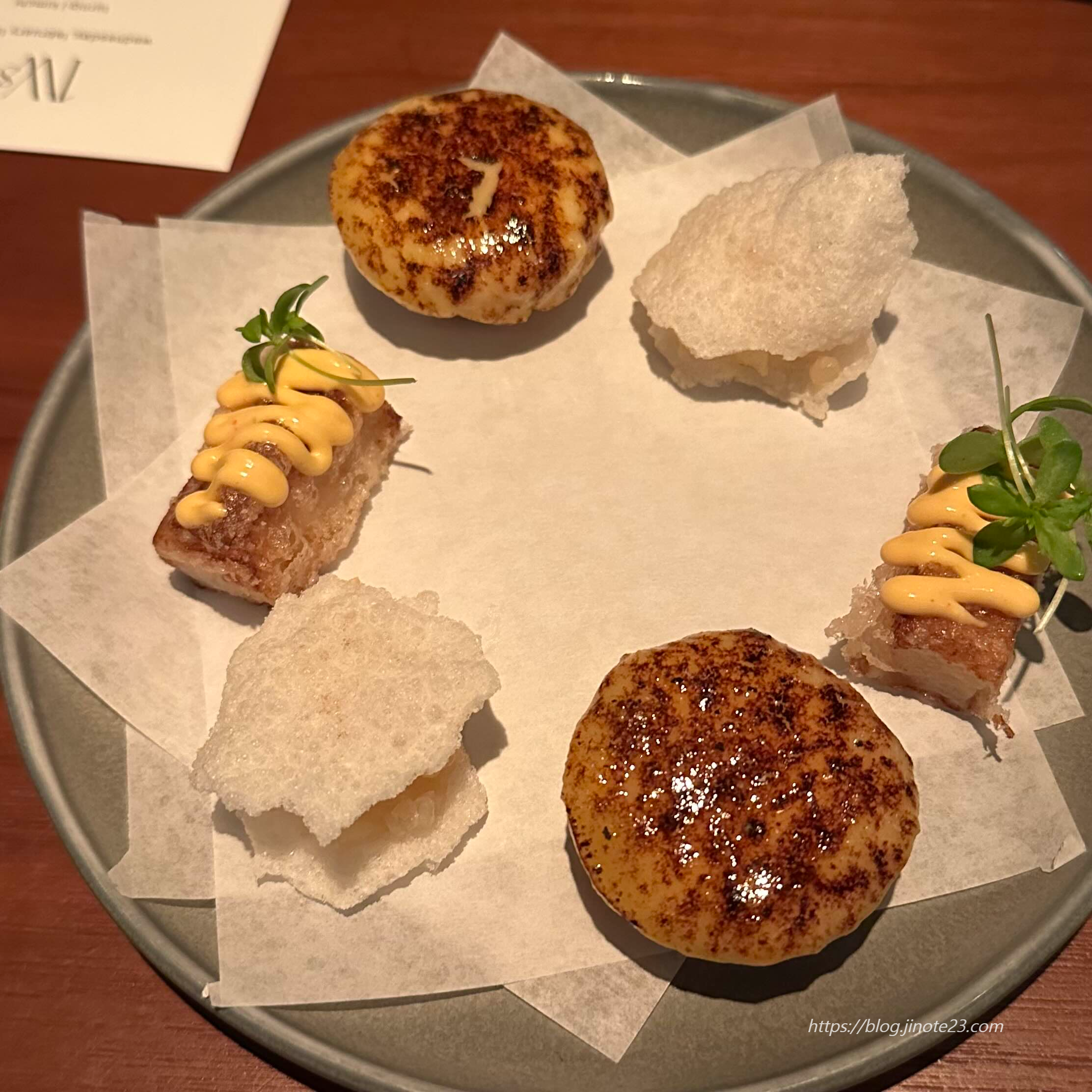 테이스팅 메뉴를 종이와 함께 설명을 해주고, 순서대로 저희가 먹는 속도에 맞춰서 다음 코스들이 나옵니다.