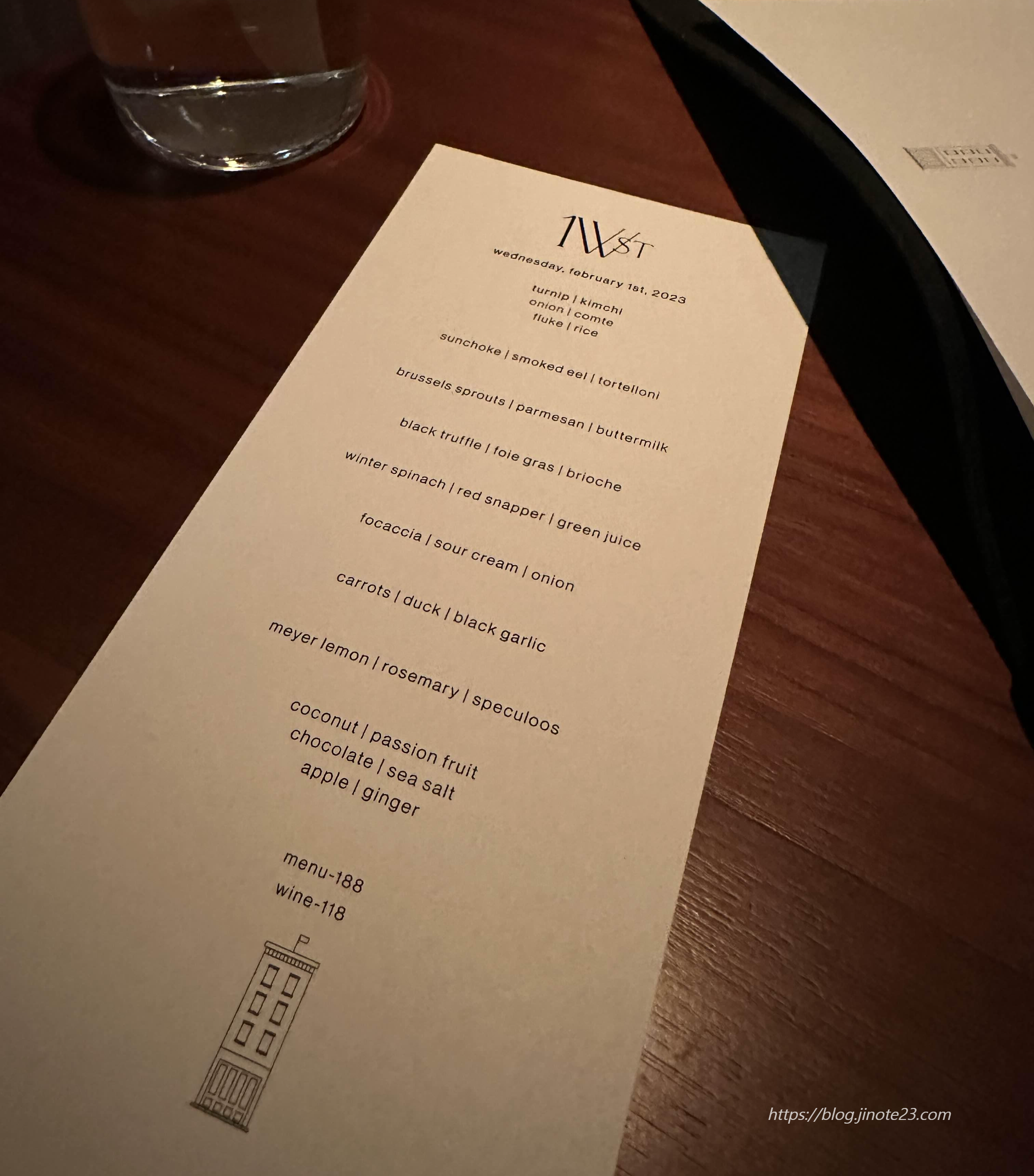 뉴욕 미슐랭1스타 레스토랑 One White Street - 테이스팅 메뉴 후기