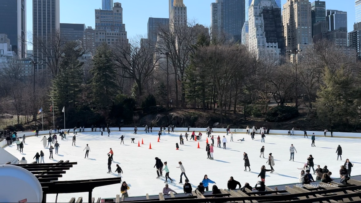 사람들 스케이트타는거 구경하면서 여기 위에서도 많이 사진 찍더라고요. 하지만 여기는 센트럴파크의 입구에 불과하죠.. 저는 뒤에 일정이 있어서 여기서 돌아갔는데 시간 되시는 분들은 꼭 안까지 구경하고 가셨음 합니다.
