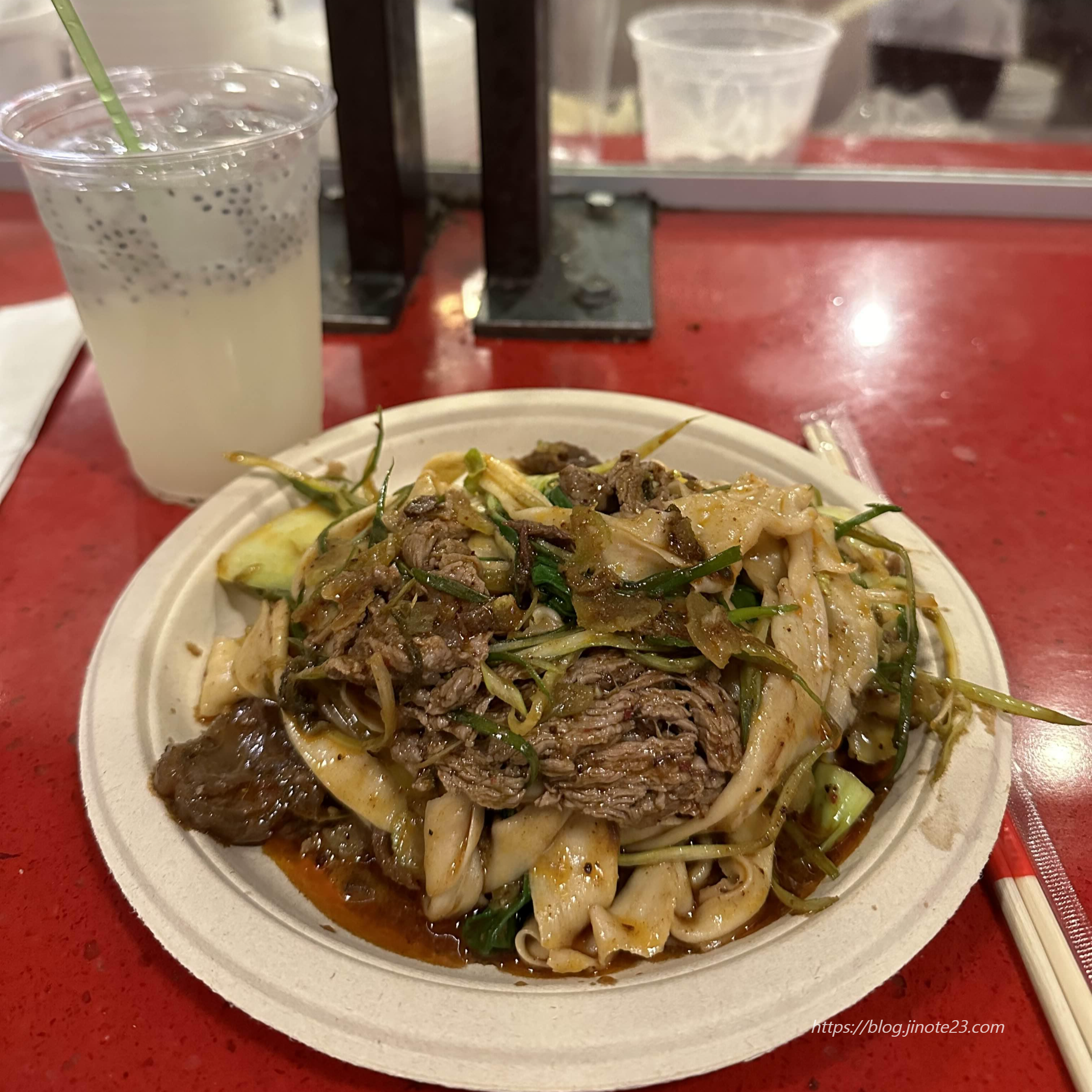 저는 리치 레모네이드와 Dry Tingly Cumin Beef 누들을 먹었는데 약간 간간한 듯 하지만 양념이 괜찮았고, 면도 쫄깃하니 맛있었어요. 기본적으로 향신료 맛이 있는데 괜찮았어요.
