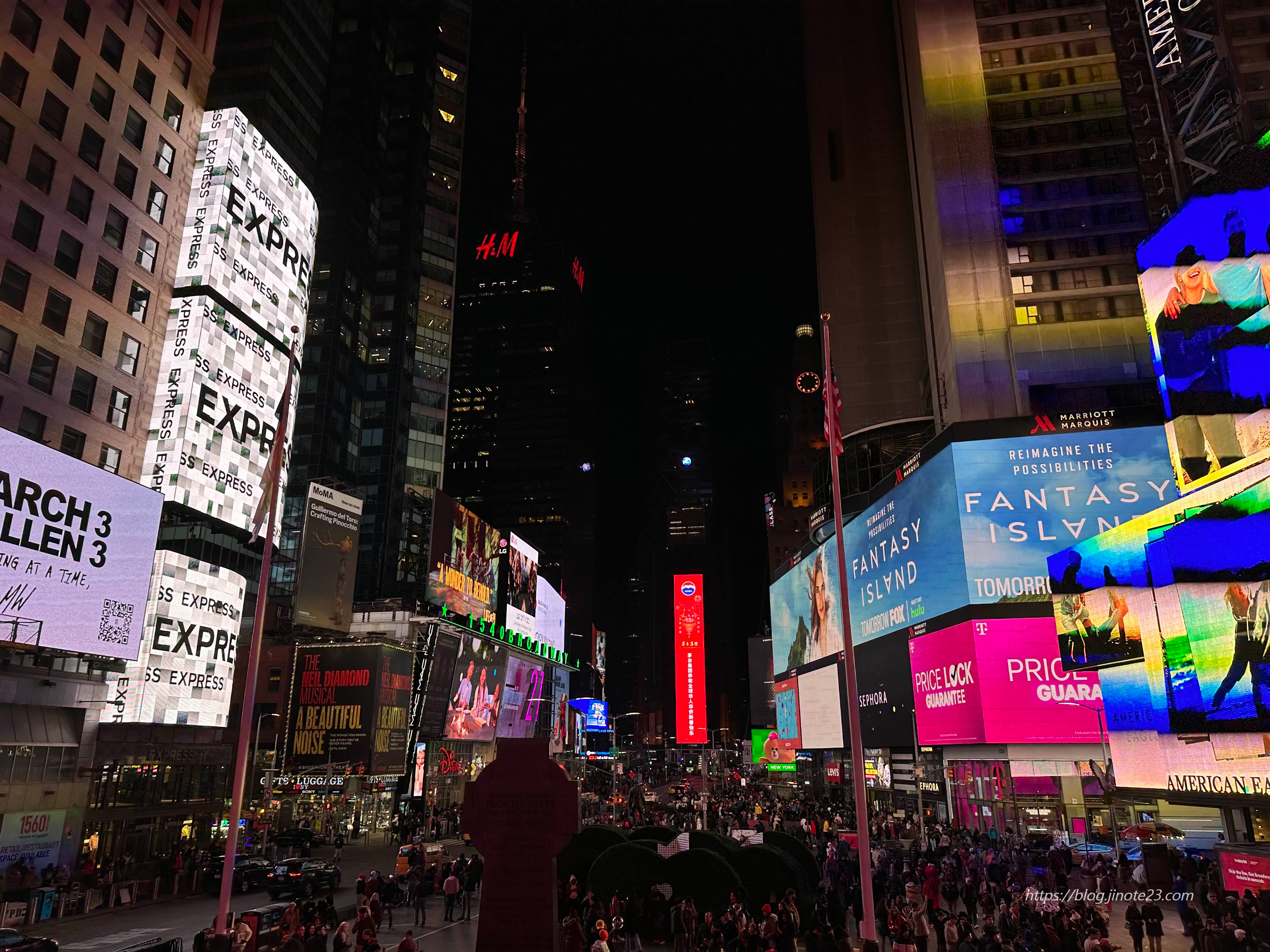 낮보다 저녁에 더 사람들이 많아 지는 것 같네요! 뉴욕에 방문하신다면 타임 스퀘어는 꼭 들려보세요.