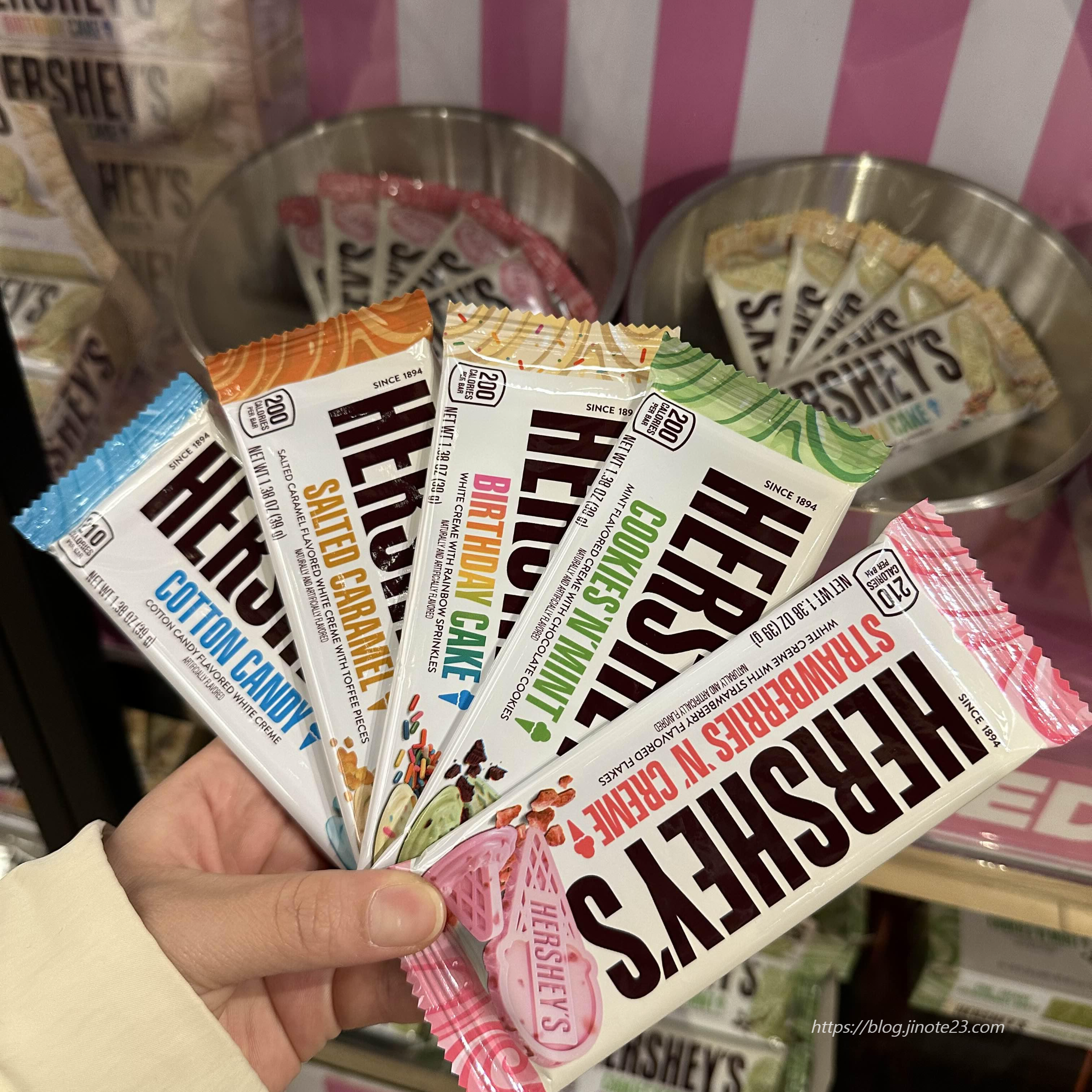 허쉬 매장에 방문하면 문 앞에서 웰컴 허쉬 초콜릿을 나눠준답니다. 여기 또한 다른 매장에서는 볼 수 없는 굿즈들과 다양한 맛의 초콜릿들을 판매하고 있기 때문에 지갑 조심하세요!