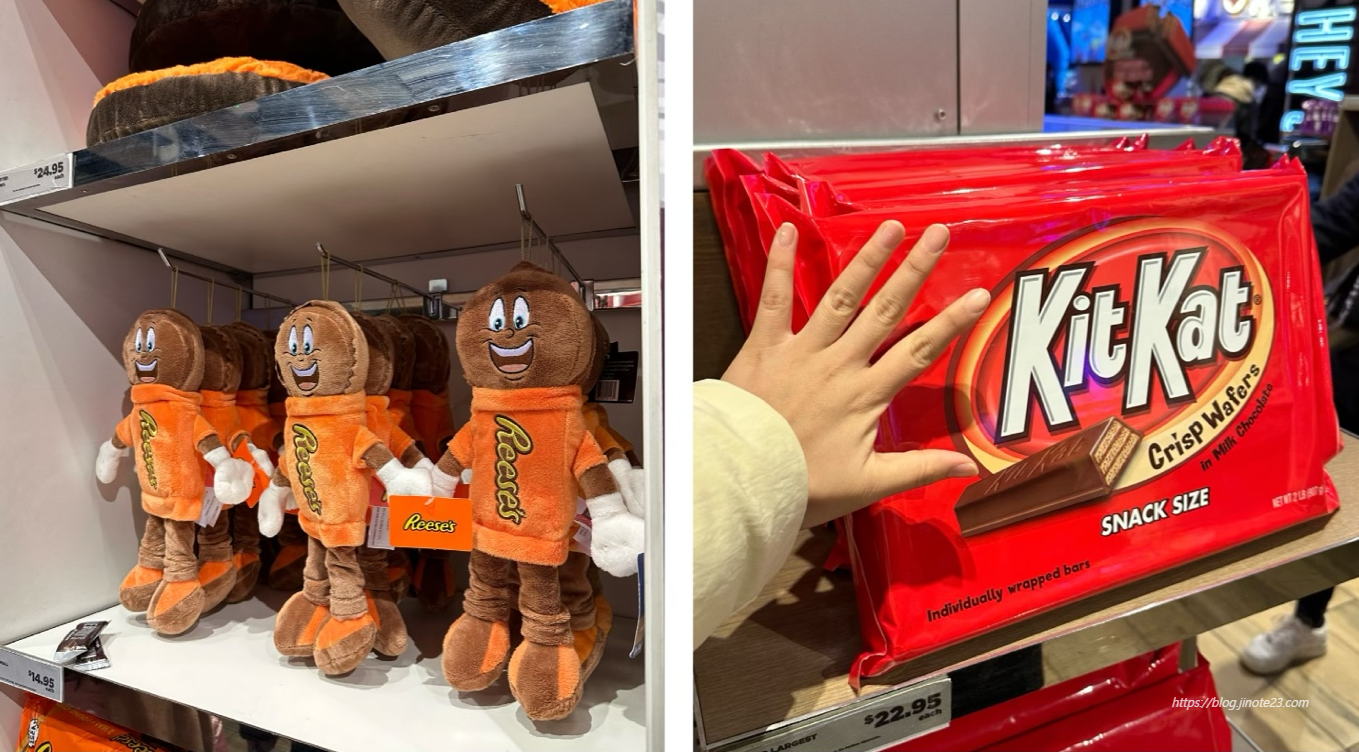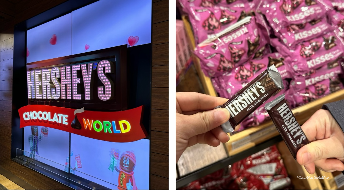 허쉬 매장에 방문하면 문 앞에서 웰컴 허쉬 초콜릿을 나눠준답니다. 여기 또한 다른 매장에서는 볼 수 없는 굿즈들과 다양한 맛의 초콜릿들을 판매하고 있기 때문에 지갑 조심하세요!