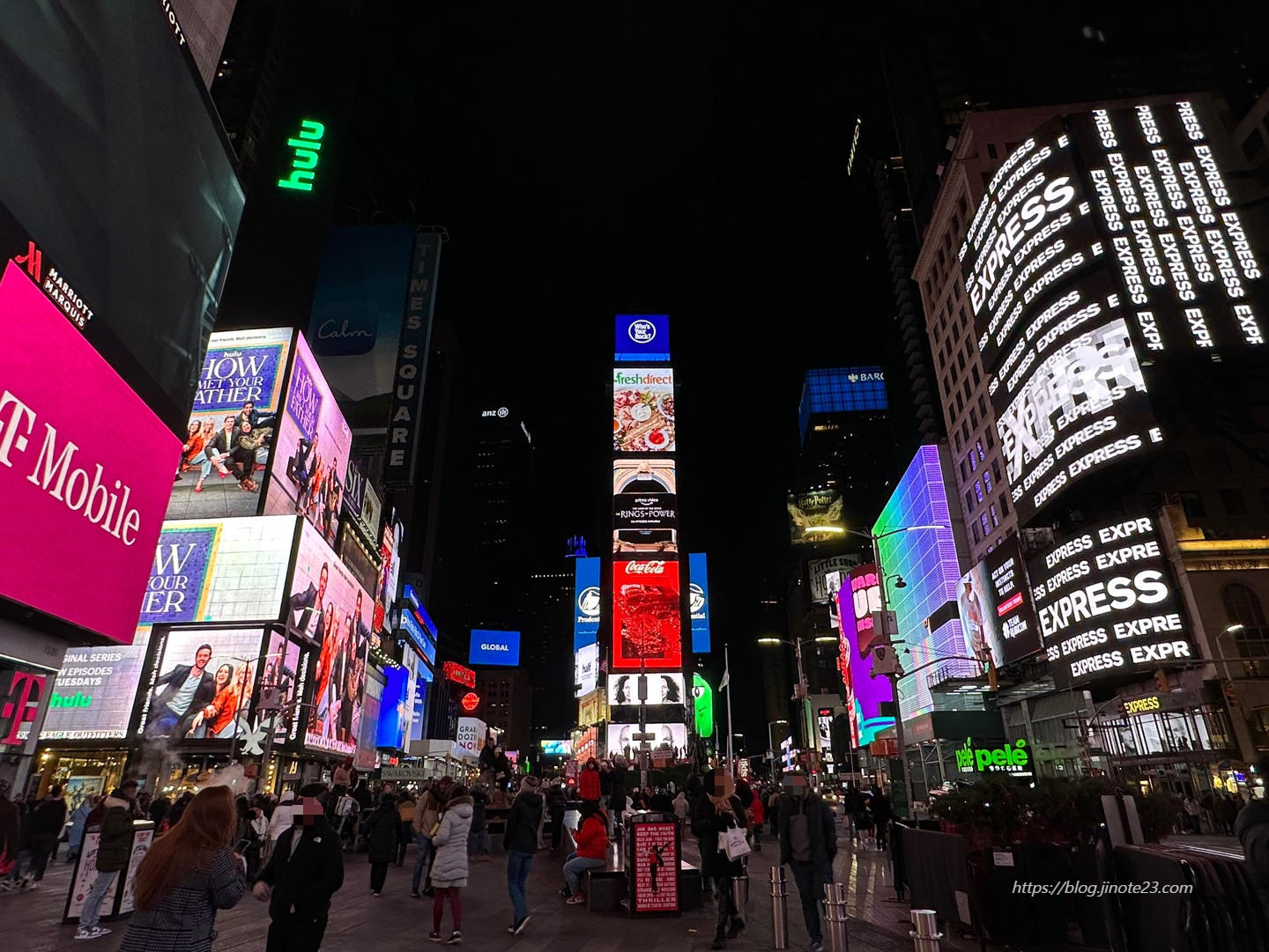 낮보다 저녁에 더 사람들이 많아 지는 것 같네요! 뉴욕에 방문하신다면 타임 스퀘어는 꼭 들려보세요.