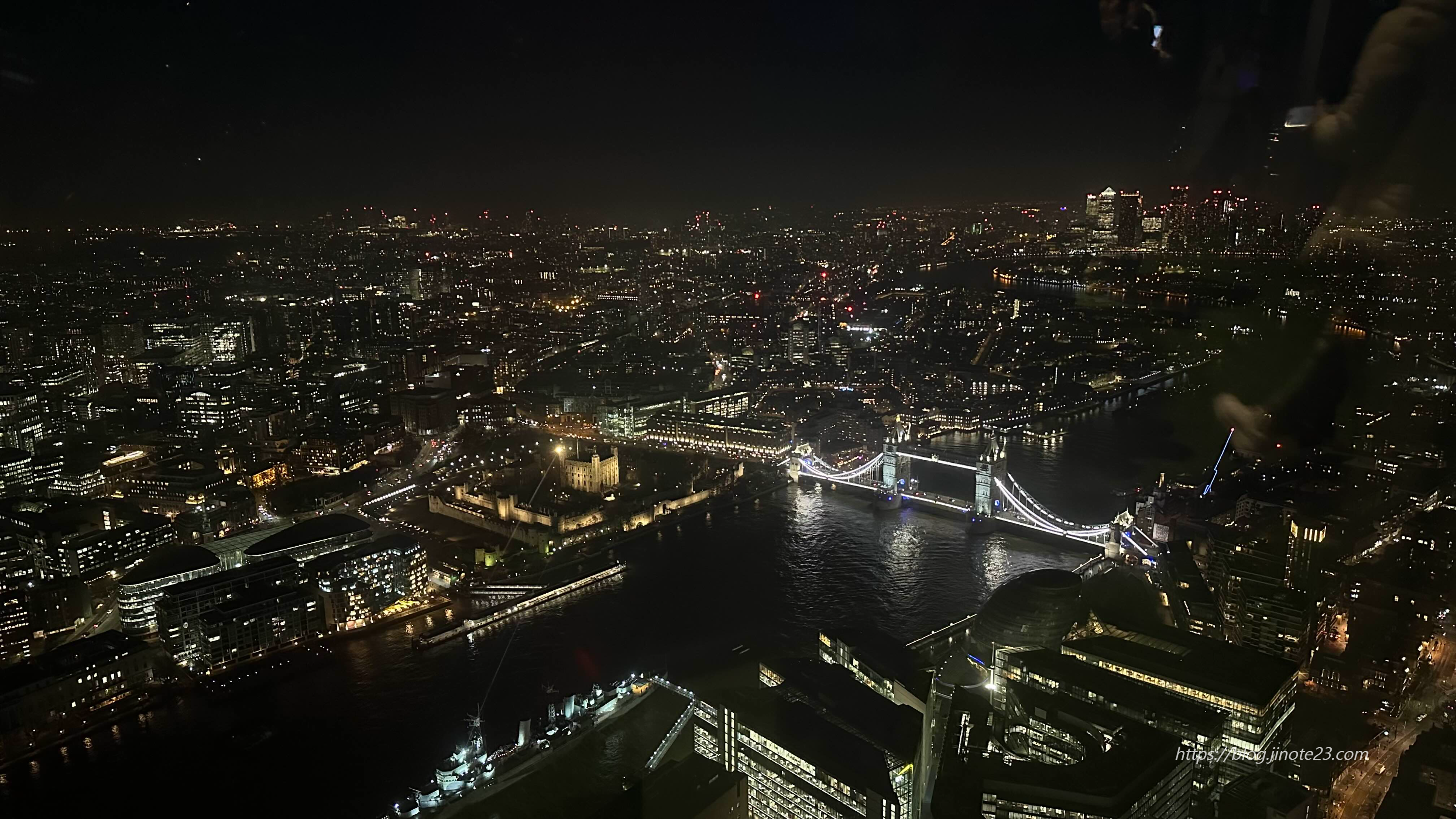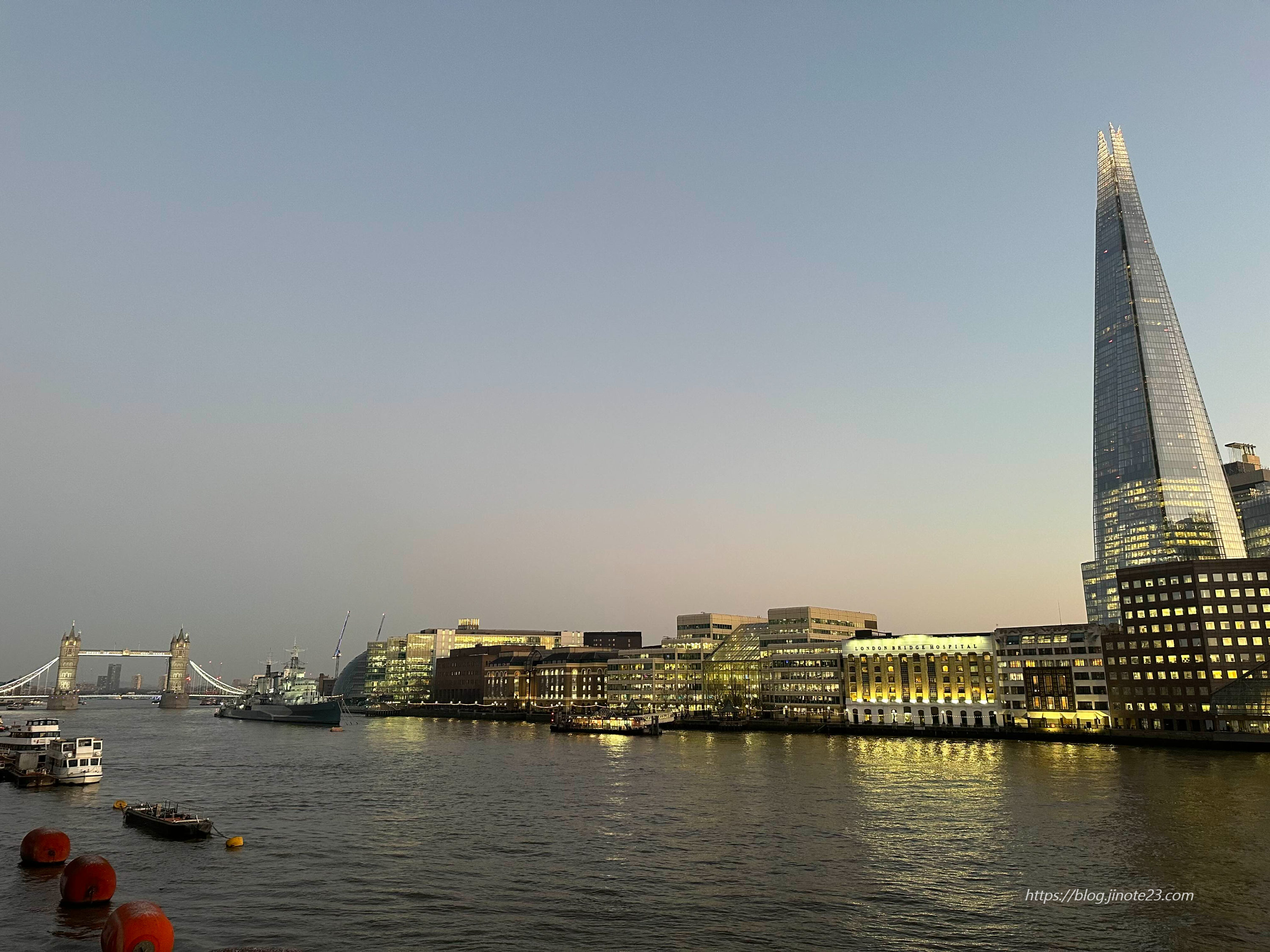 그리고 타워 브리지 전에 있는 런던교를 건너서 저기 보이는 더 샤드라는 높은 건물로 야경 보러 갔습니다.