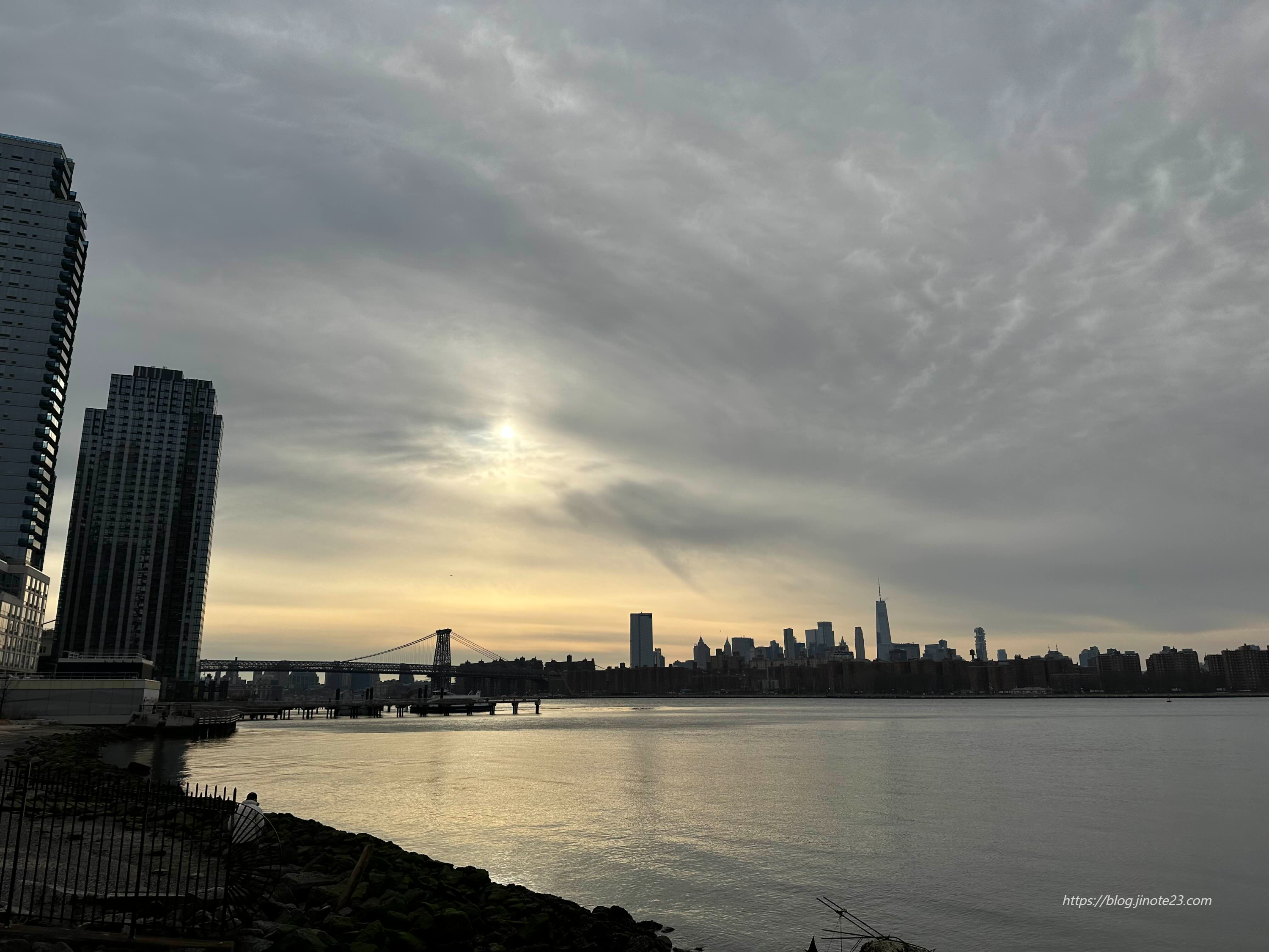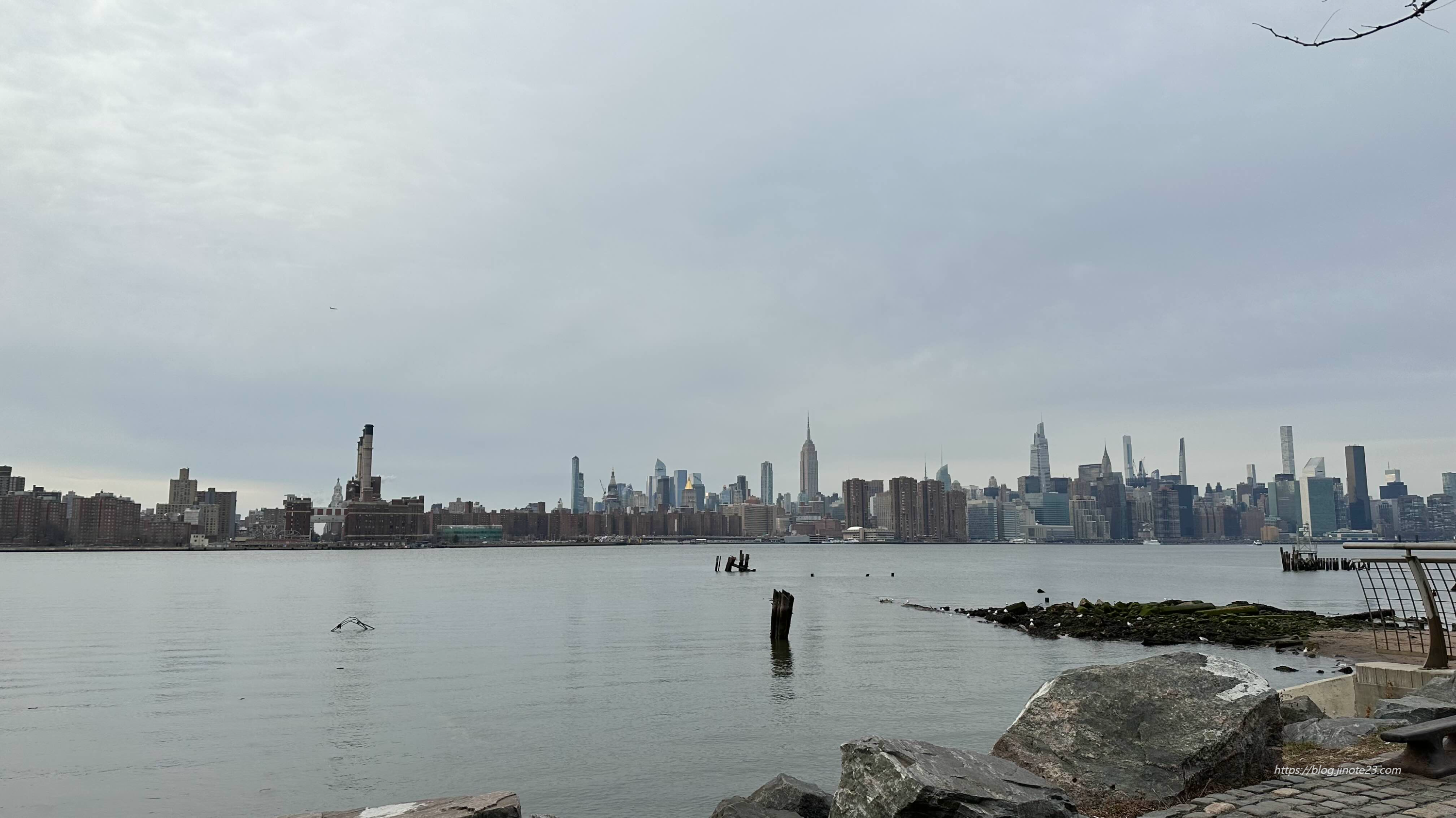 강 건너 맨해튼이 보이고,