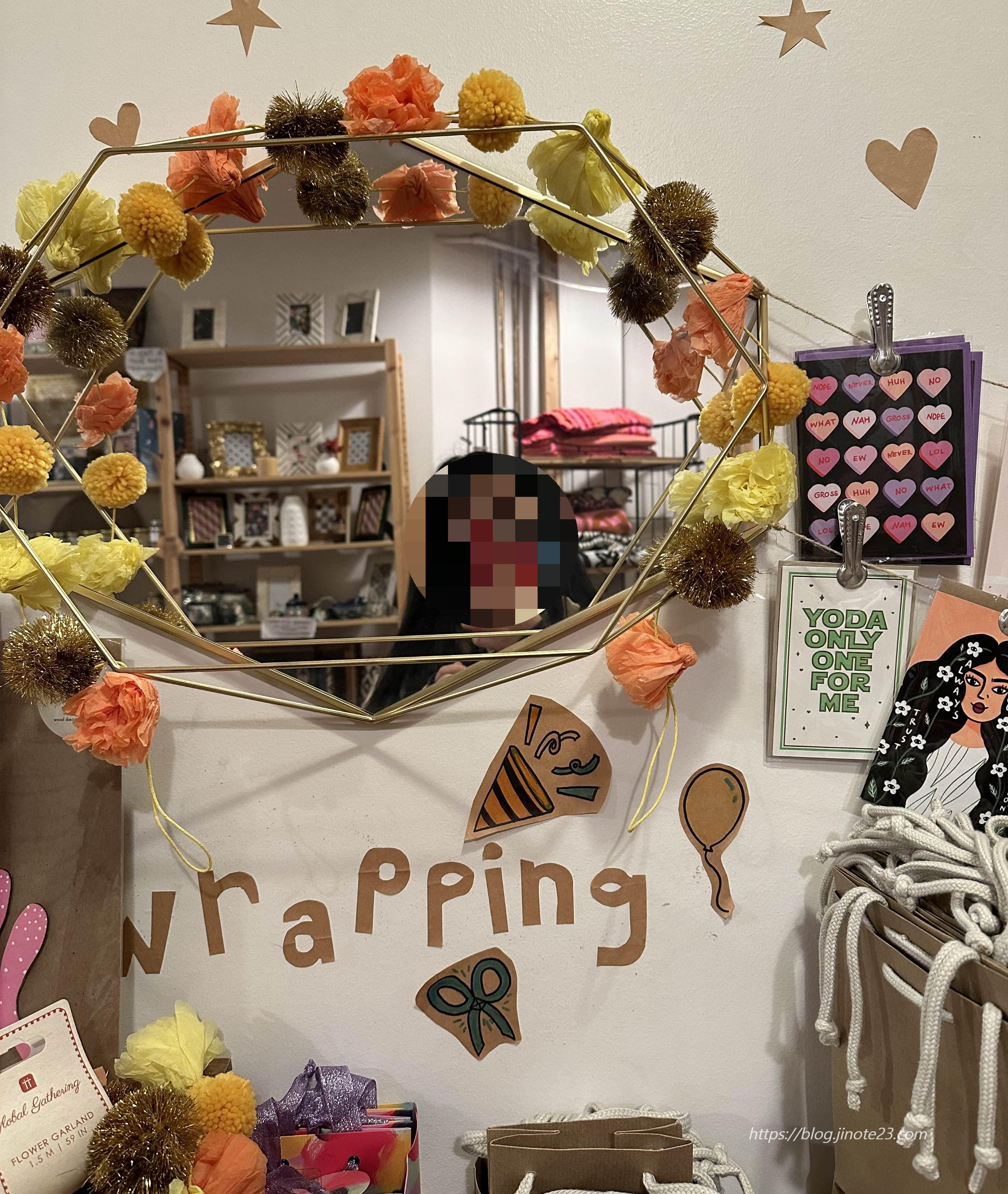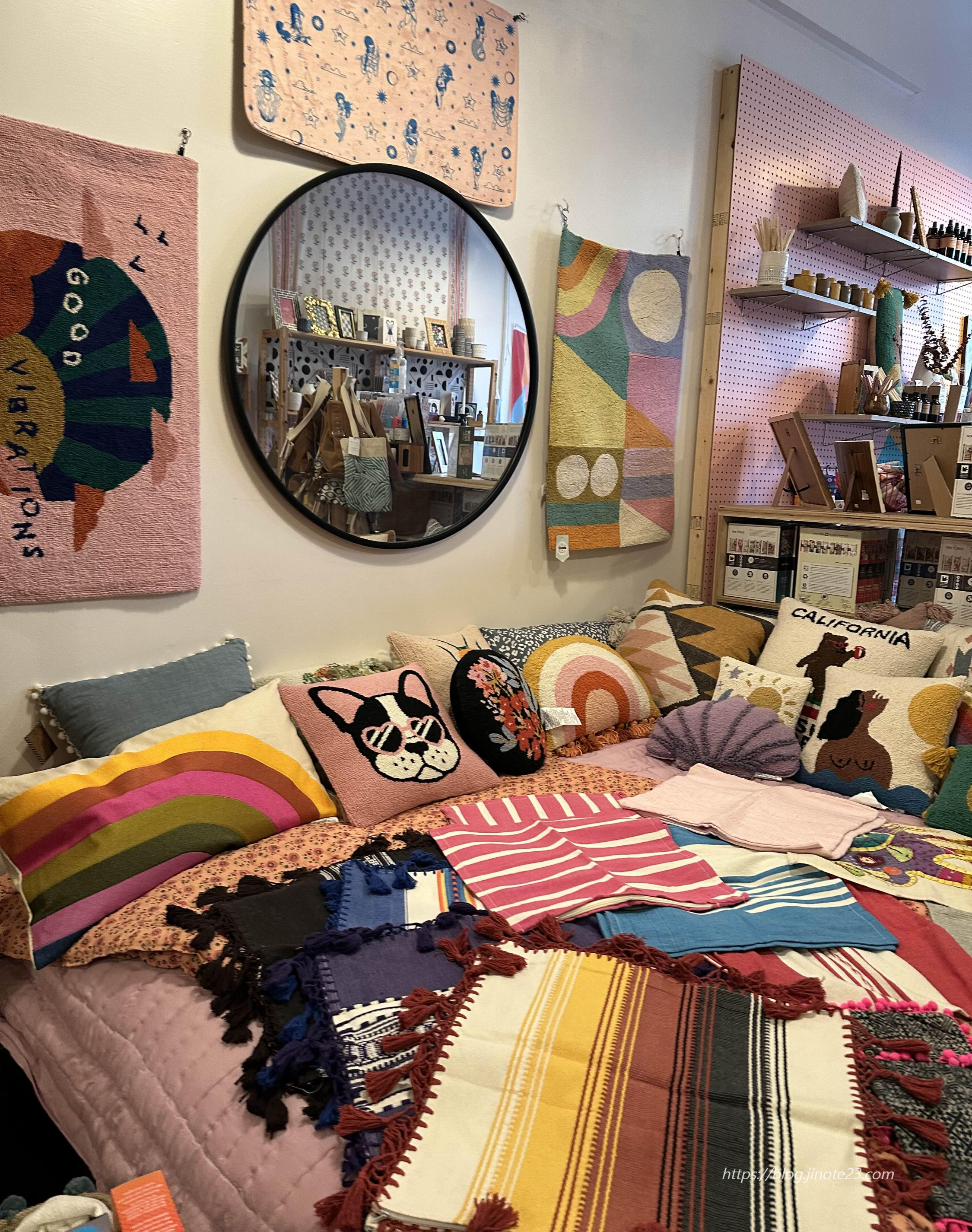 가정용품, 침구, 주방용품, 장식품 등 다양했어요. 편집샵, 소품샵 같은 느낌이고, 이쁘게 잘 꾸며놓았더라고요. 선물포장, 엽서, 약간의 문구용품 등도 있습니다.