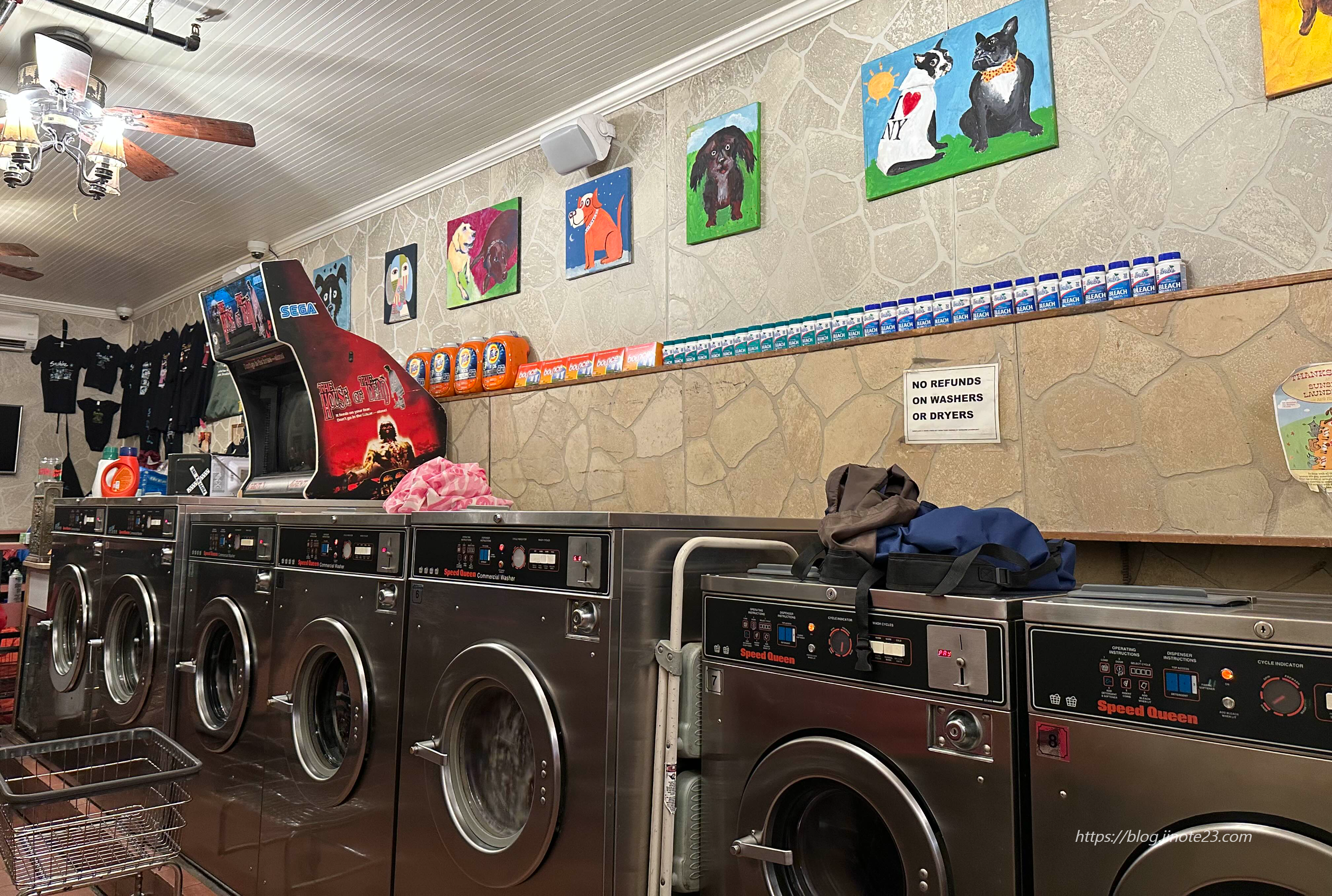 저녁에는 Sunshine Laundromat 코인빨래방을 찾아갔습니다. 여기는 게임장인가 빨래방인가.. 빨래하는 동안 심심하지 않게 게임머신을 들여놓은 것 같았어요. 제가 거의 클로즈 때 가서 그런지 다들 한 번씩 보긴 하는데 하진 않더라고요.