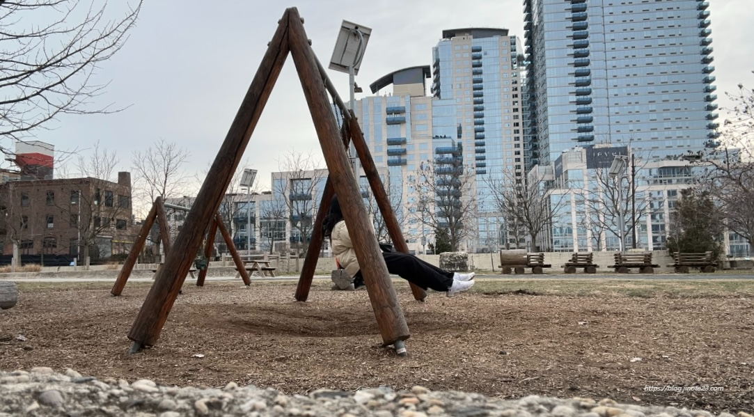 공원 들어가는 길에 그네가 있어서 한번 타주고,
