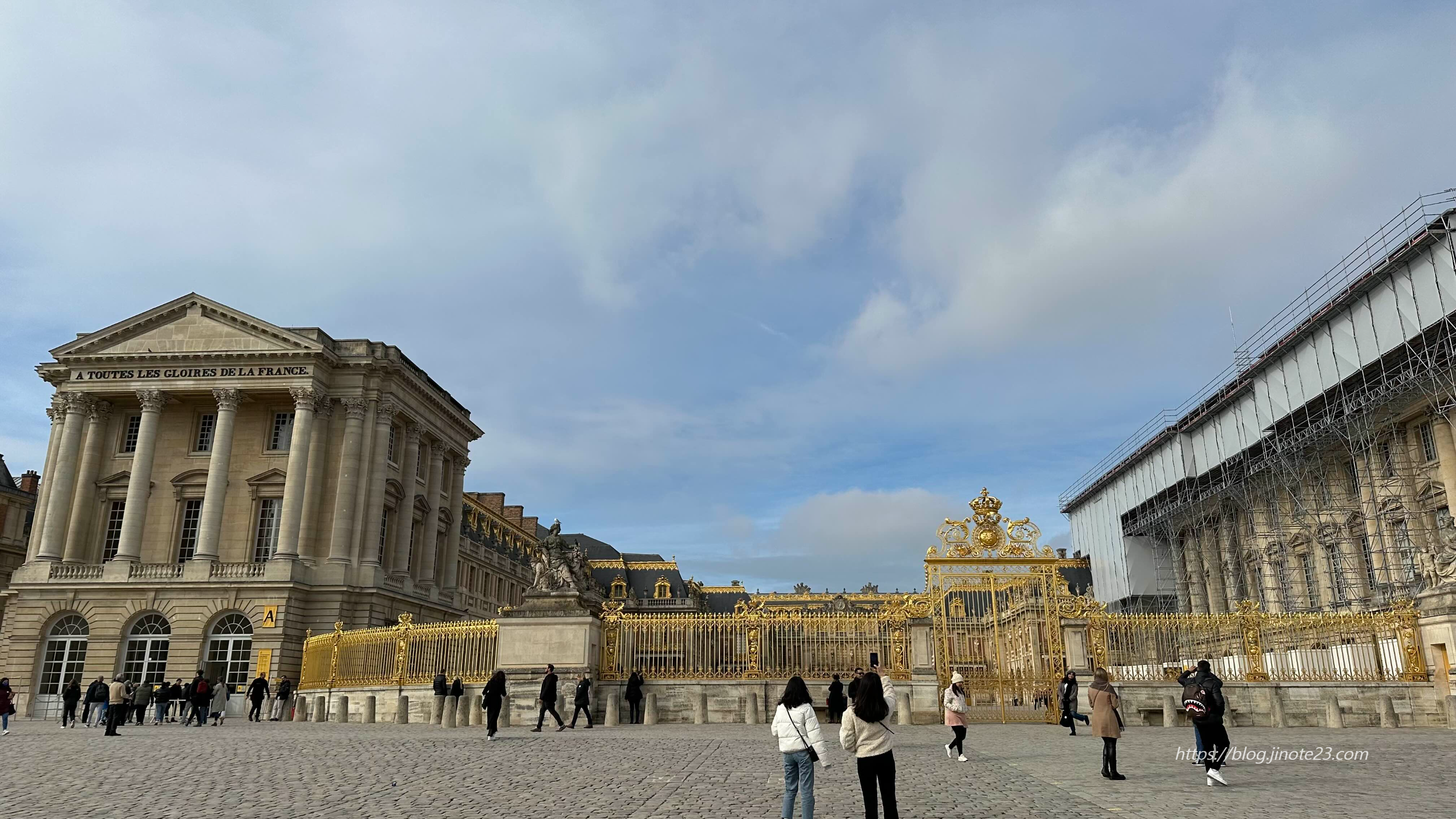 둘째 날은 부지런히 베르사유 궁전(Versailles)을 보러 왔습니다. 오른쪽 건물 외관이 공사 중이었지만 실내는 들어갈 수 있었습니다. 보통 대기줄이 길다고 들었는데 저는 미리 예약을 하고 평일 오후 12시 30분 정도에 방문했는데 대기줄 없이 바로 들어갈 수 있었어요. 예약 줄이랑 현장방문 줄이 다르다고 하니 잘 알아보시고 기다리세요!