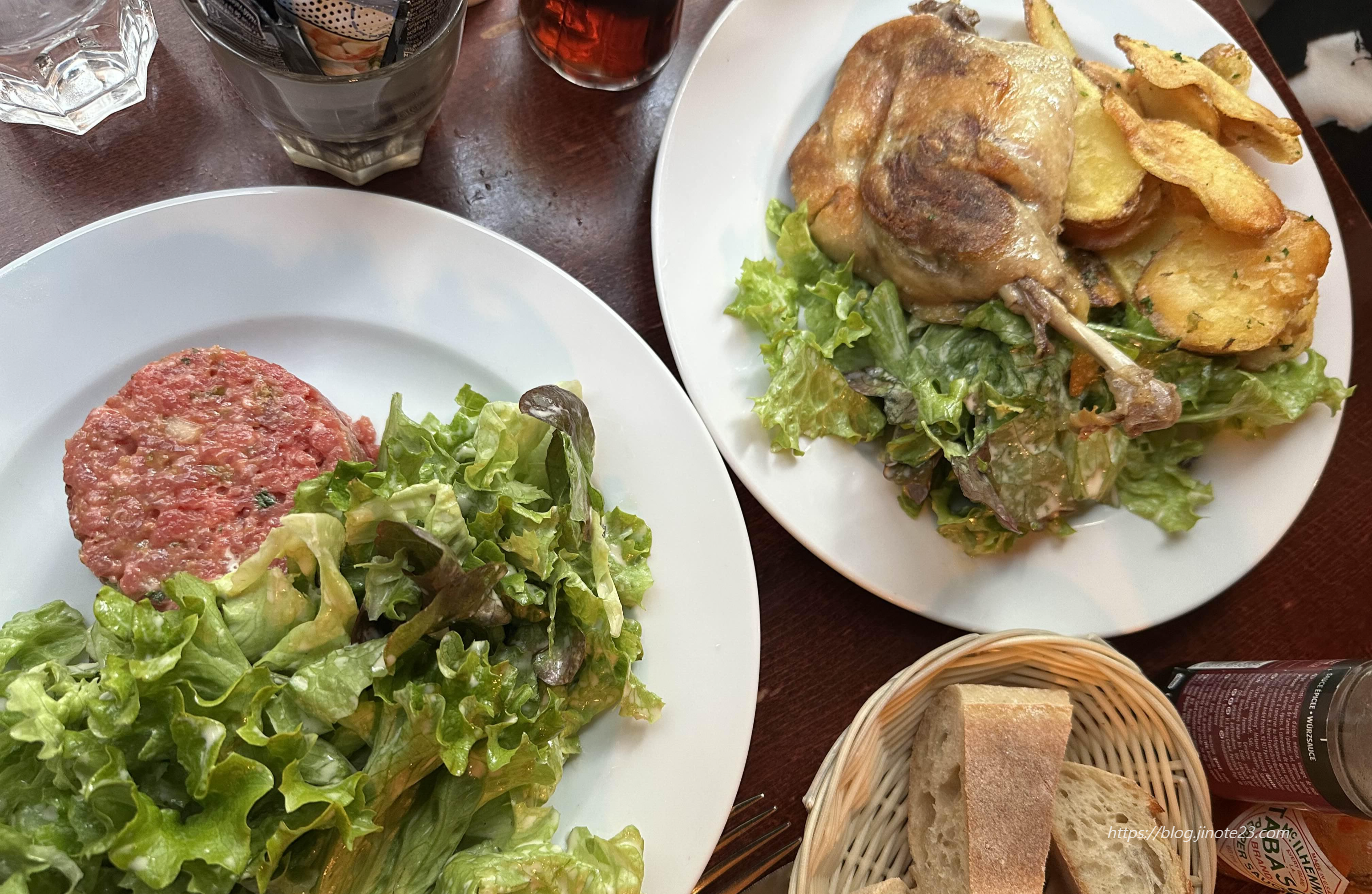 여러식당을 가다 보면 아실 텐데 메인과 함께 프렌치프라이가 함께 구성되어 있는 경우가 많더라고요. 저희는 프라이를 많이 먹으면 조금 느끼해서 프라이 대신 샐러드로 바꿔서 부탁드렸습니다. 어니언수프도 함께 먹었는데 모두 맛있었어요!