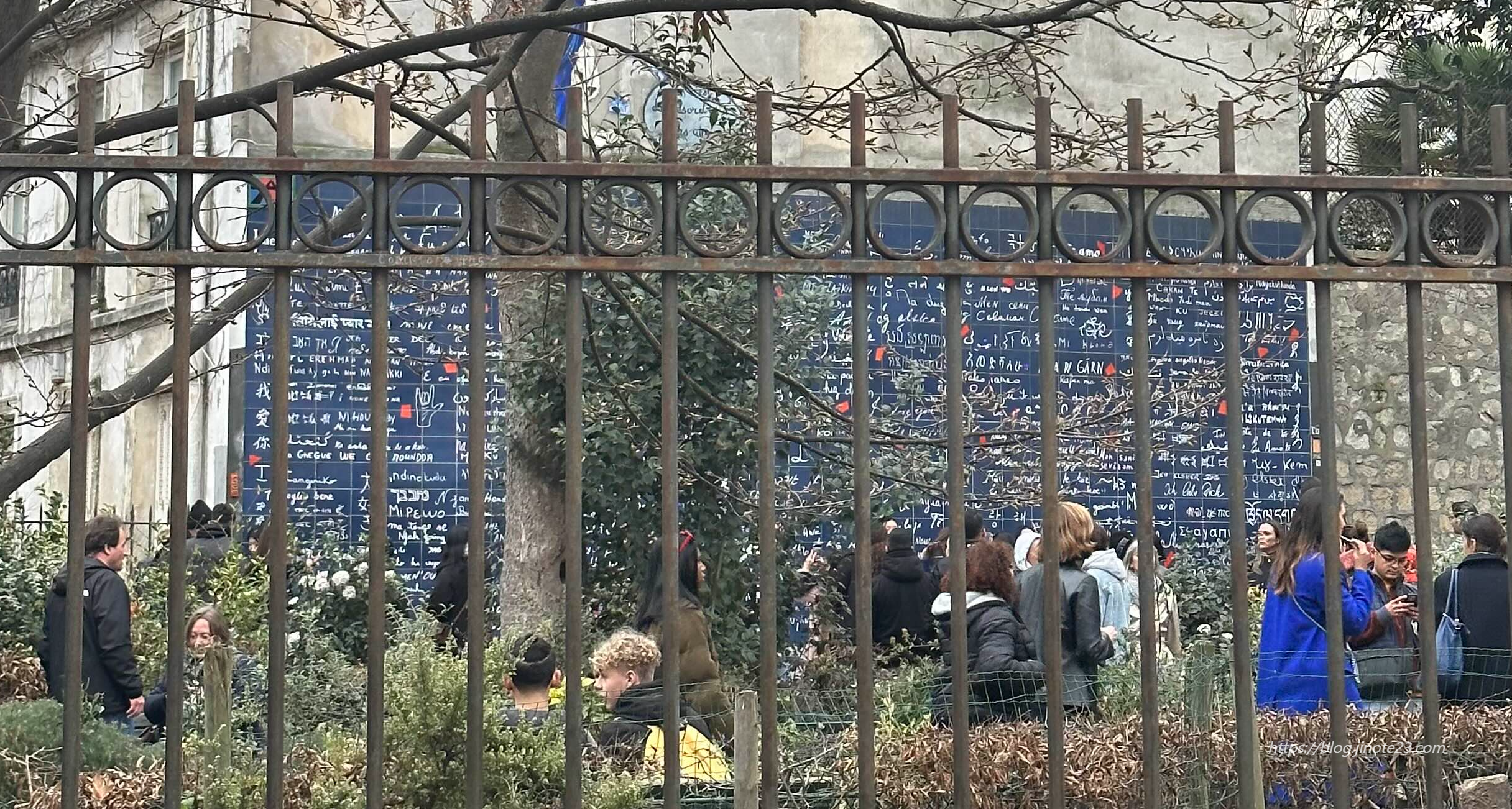 백화점 내에서 점심을 간단히 먹고 몽마르뜨 언덕으로 옮겨갔습니다. 몽마르뜨 가는 방법을 많이 찾아봤는데 도착지를 몽마르뜨 언덕이 아니라 사크레쾨르 대성당으로 찍고 가야 우리가 알고 있는 그곳으로 잘 찾아갈 수 있다고 해서 헤매지 않고 무사히 잘 갈 수 있었어요. 가는 길에 사랑의 벽도 봤어요. 이 벽이 유명하다고는 들었는데 저 너머로 간단히 보고 몽마르뜨로 향했습니다.