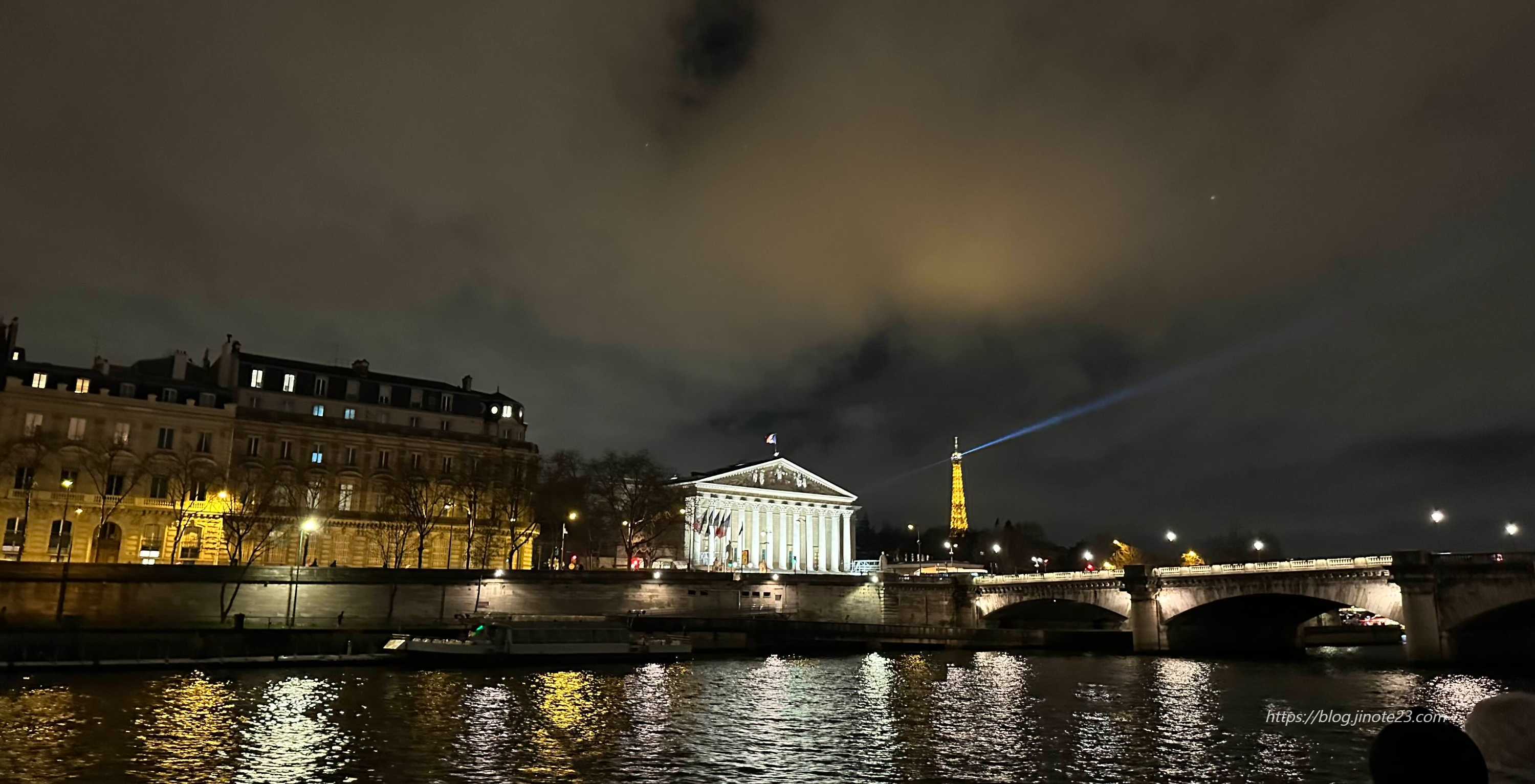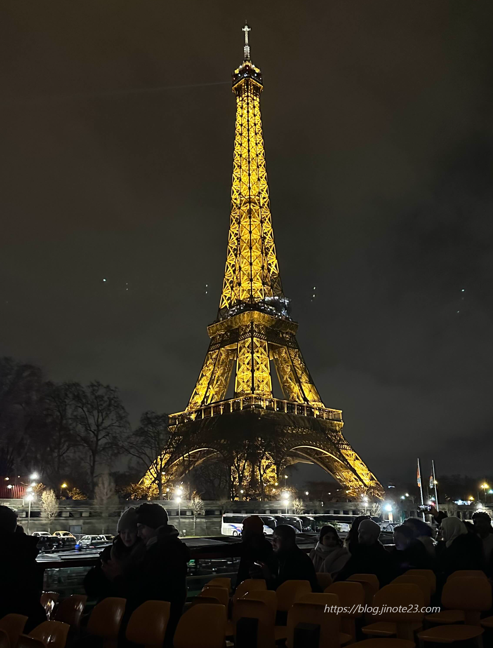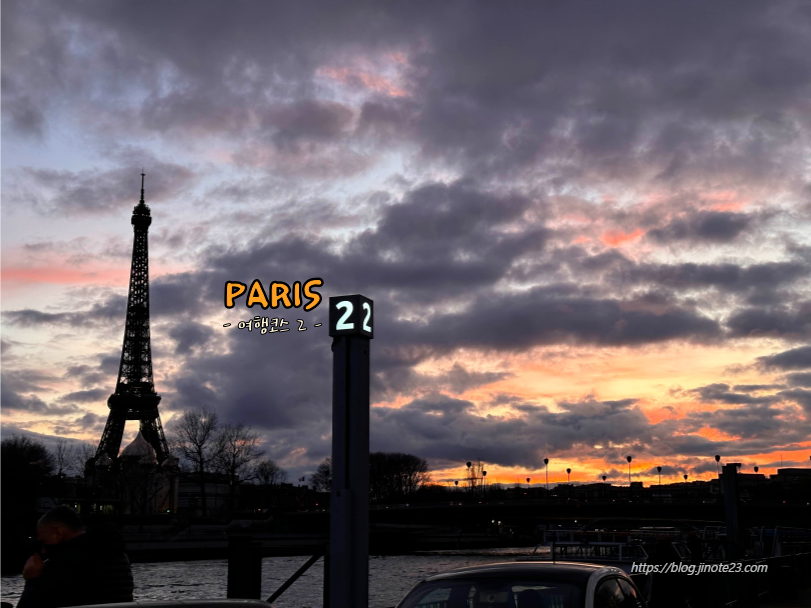 센 강을 따라 1시간 정도 걸렸어요. 돌아올 때는 에펠탑 가까이까지 찍고 돌아와요. 2월 중반 기준으로 저는 7시 반 정도에 탔는데 이 전타임으로 타면 노을을 이쁘게 보실 수 있을 것 같고 그 이후에는 야경과 에펠탑이 점등되어서 반짝거리는 모습을 함께 볼 수 있을 거예요.