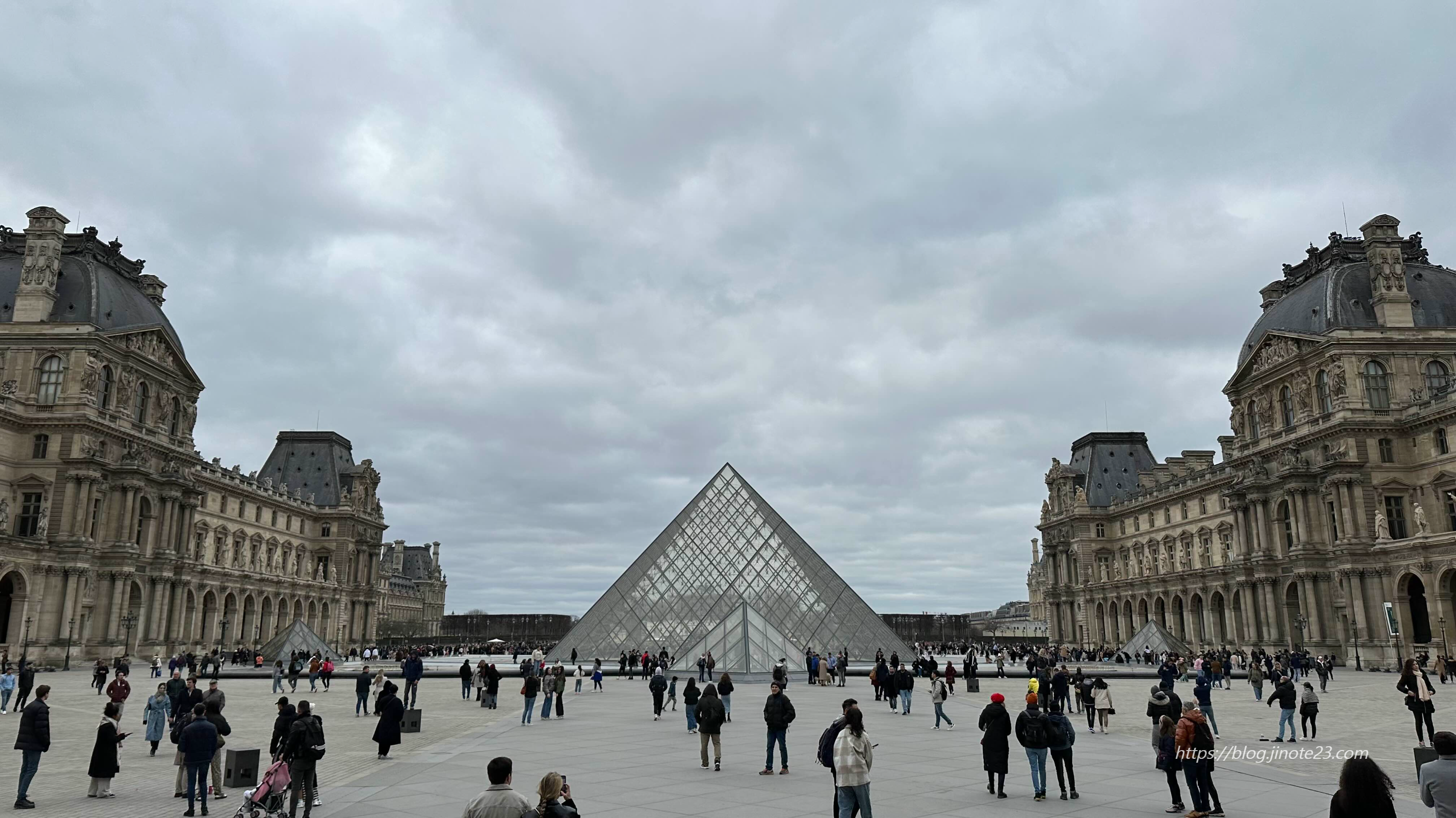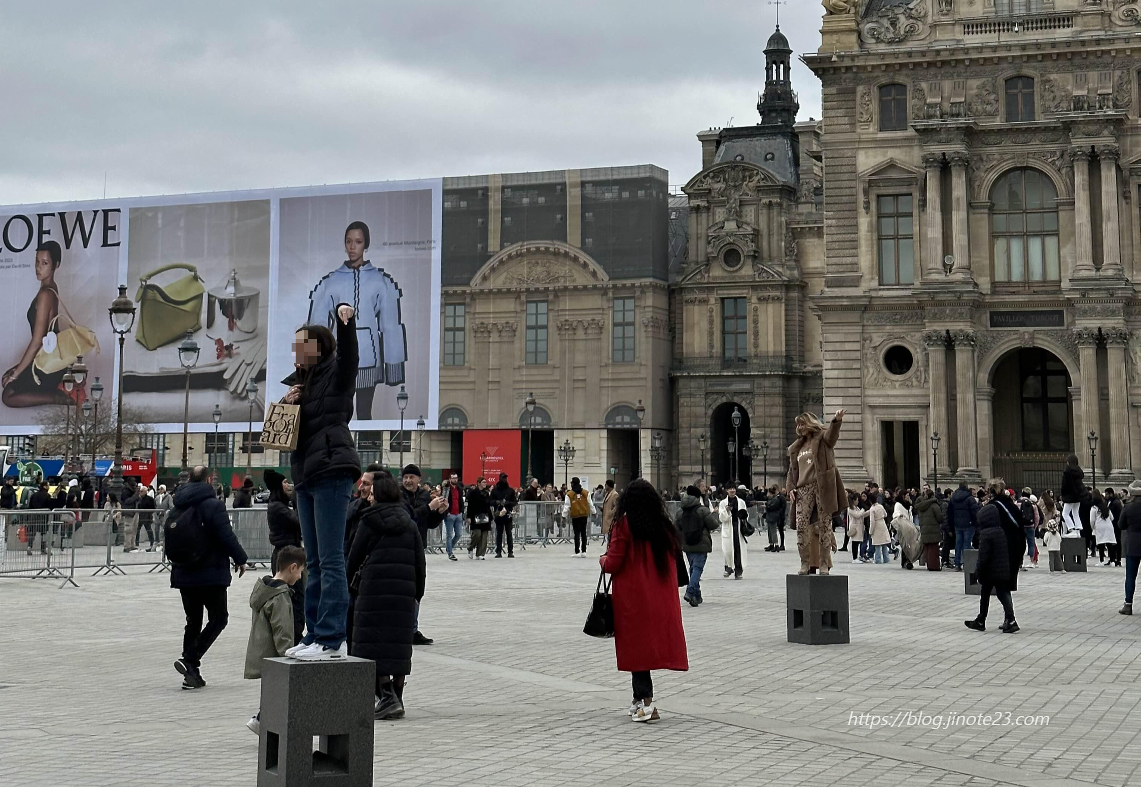 많은 여행객들이 돌 위에 올라가 저 맨 위부분을 집는 모습으로 많이 사진 찍더라고요. 그런 모습으로 다 같이 주루룩 그러고 있는데 흥미로웠습니다. 시간도 많지 않고 기다리는 줄도 너무 길어서 저 주변에서만 둘러보고 갔어요. 루브르도 내부가 넓어서 보는데 한참 걸릴 것 같더라고요.