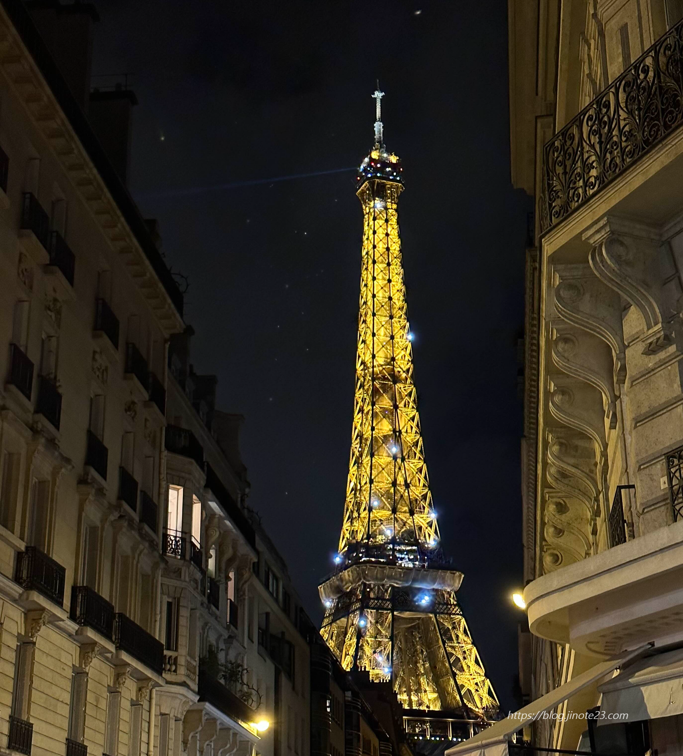 호텔로 들어가는 길에 몇몇 사람들이 거리에서 갑자기 사진을 찍어서 왜 그런지 봤더니 건물들 사이로 이쁘게 에펠탑이 보이더라고요.